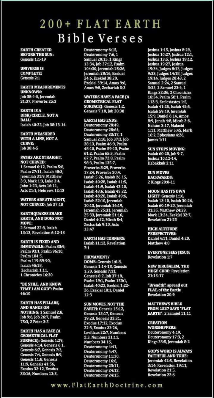 This page is a database of the Flat Earth Bible quotes tabulated by Nathan Roberts at flatearthdoctrine.com as publishied in this meme.